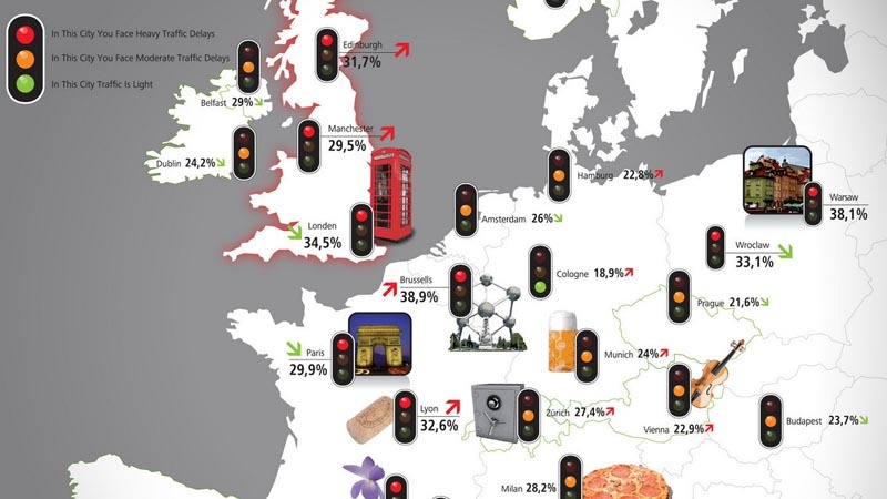 De șoferi în trafic, în orașele cu peste 800.000 de locuitori de pe toată planeta, iar bucureștiul a ieșit pe locul 5 în lume, în timp ce în europa conduce detașat. Anul acesta, pe prima poziție în topul celor mai bulucite orașe din lume se află los angeles. Cea mai aglomerata retea de metrouri.